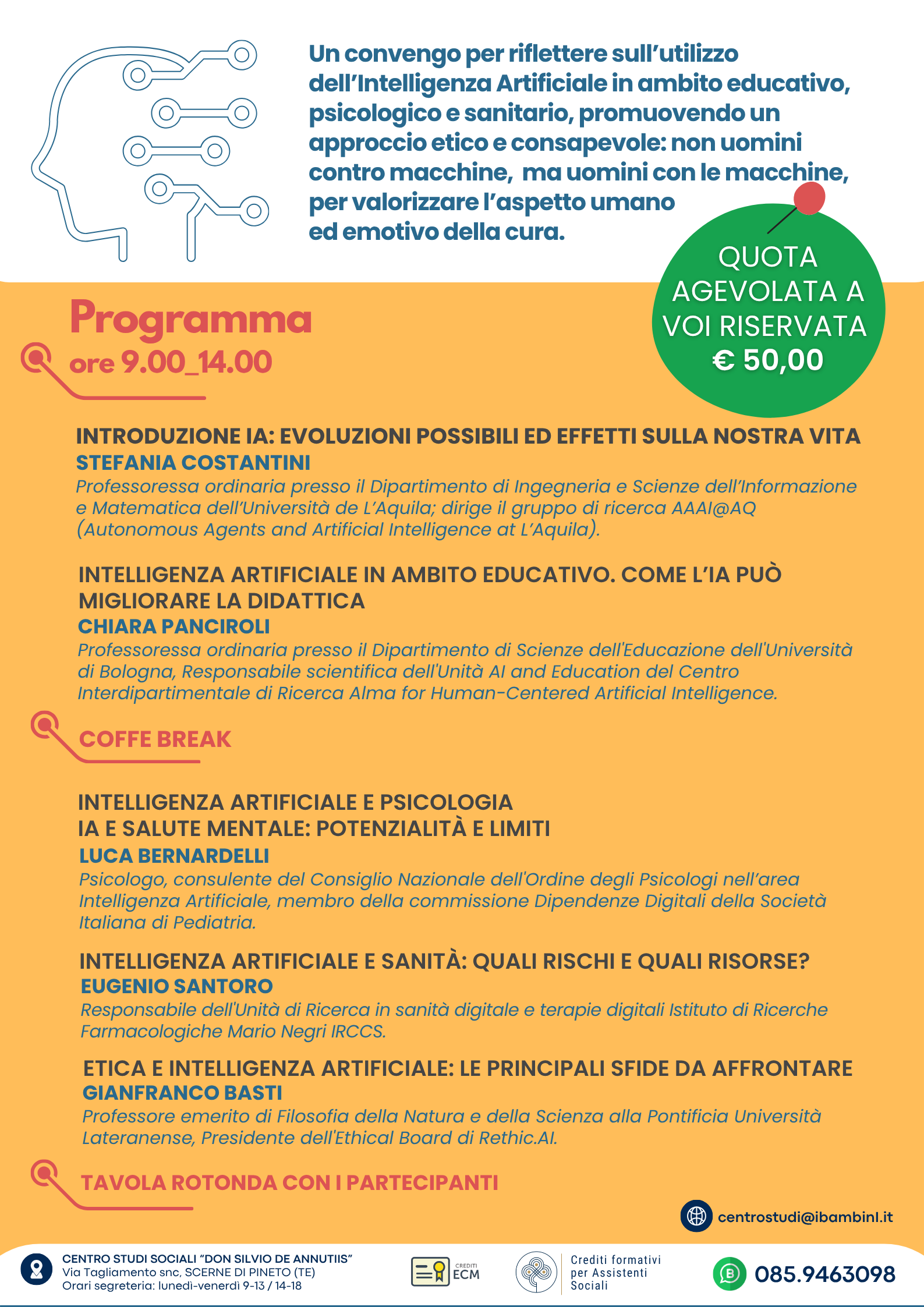 Il Centro Studi Affido ha organizzato il convegno “INTELLIGENZA ARTIFICIALE E PROFESSIONI DI CURA” che si svolgerà il prossimo 4 dicembre 2025 dalle ore 9.00 alle ore 14.00 presso la sede del Centro Studi Sociali.
